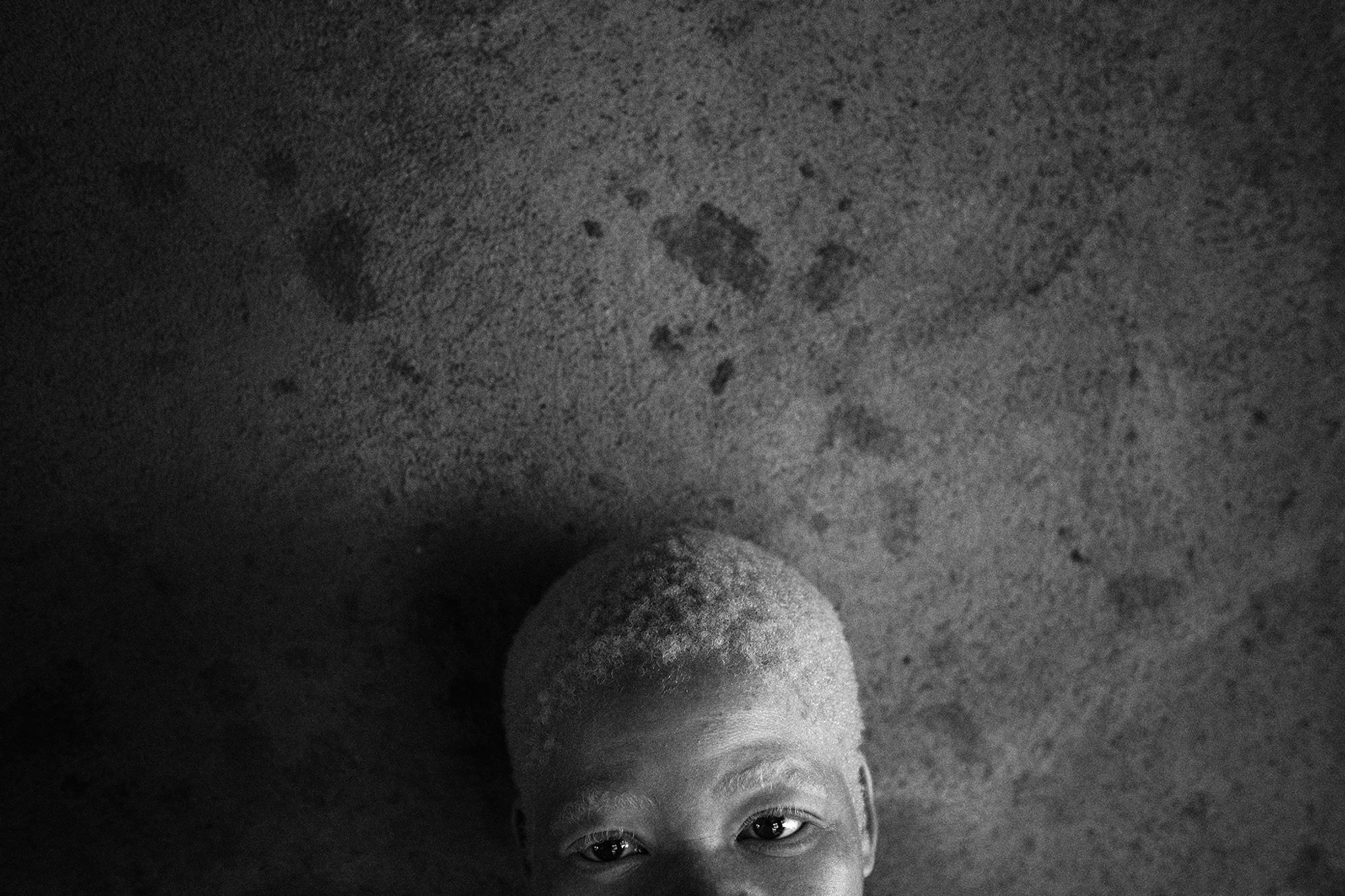 Yohane Kanwendo, 24 years old, lives in the area 22 in Lilongwe. On July 27, 2015, a stranger approached him in the street offering employment in a grocery store and he accepted. He didn’t know that it was going to be the worst day of his life. After a lunch that seemed harmless, Yohane entered the man's car, which headed towards the border with Zambia. After crossing the border, the man took him to a house with many dead albinos inside. Startled, not knowing where he was, thinking that his life was almost over, another man appeared and gave him money to escape. Today he is still afraid and he doesn't leave his home zone. Many albinos are lured with job offers because there is a lot of discrimination and many of them cannot get jobs. © Daniel Rodrigues, Finalist, LensCulture Portrait Awards 2017.