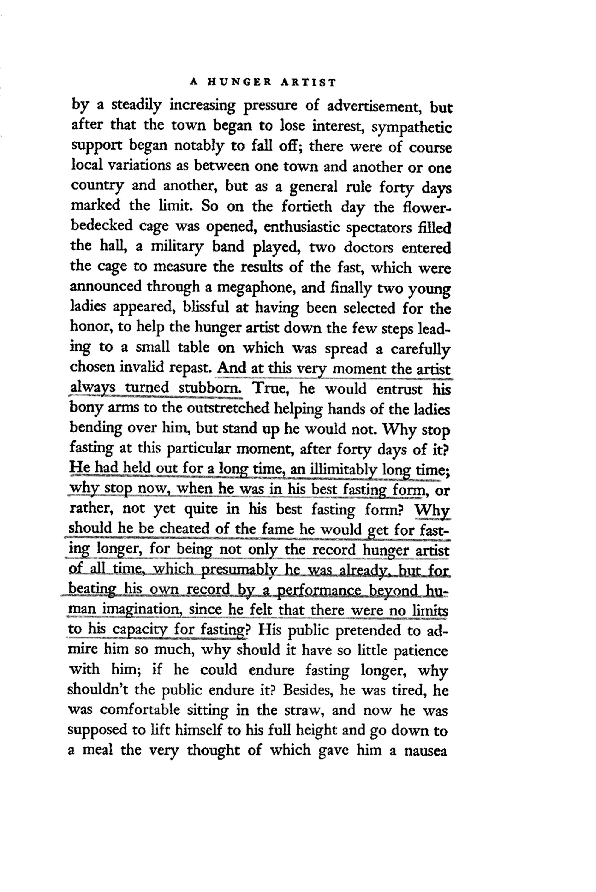 “A Hunger Artist” (Ein Hungerkünstler) text by Franz Kafka 5/14