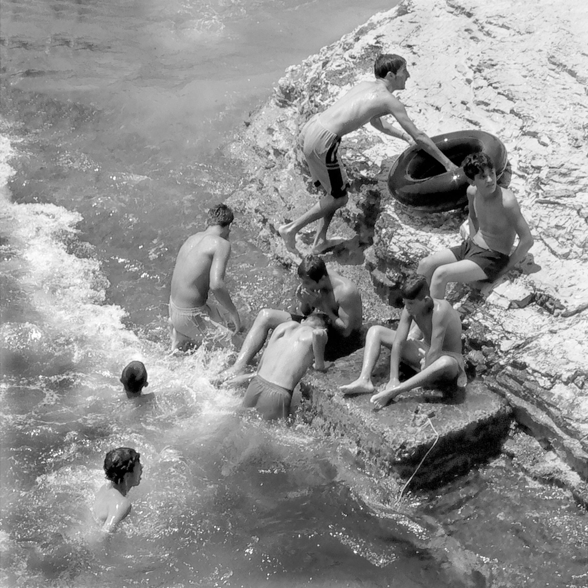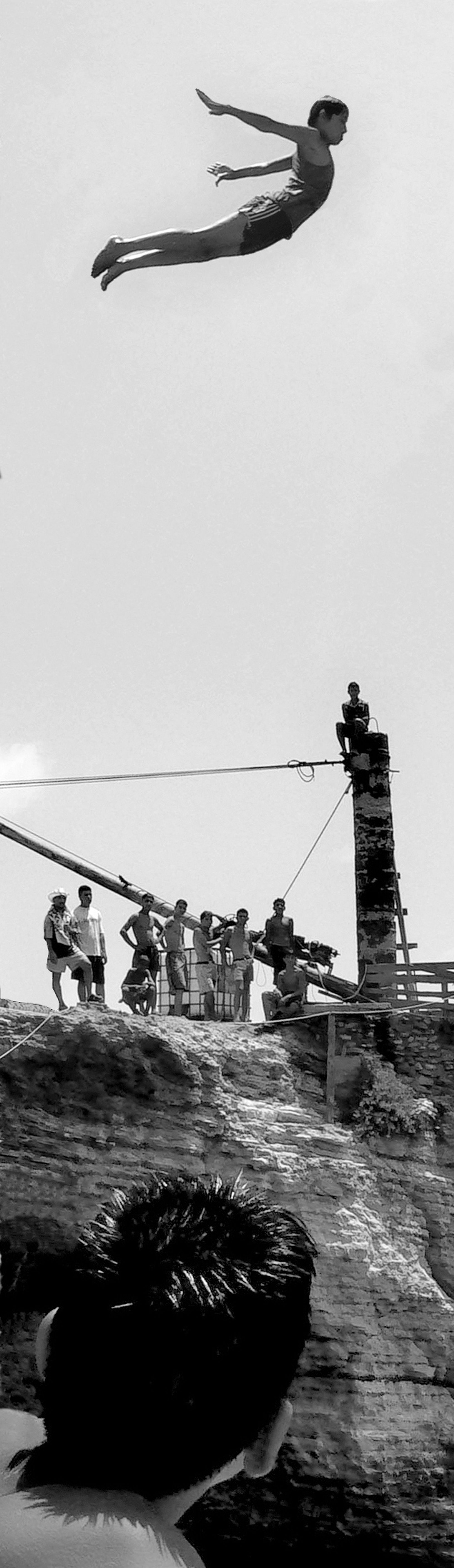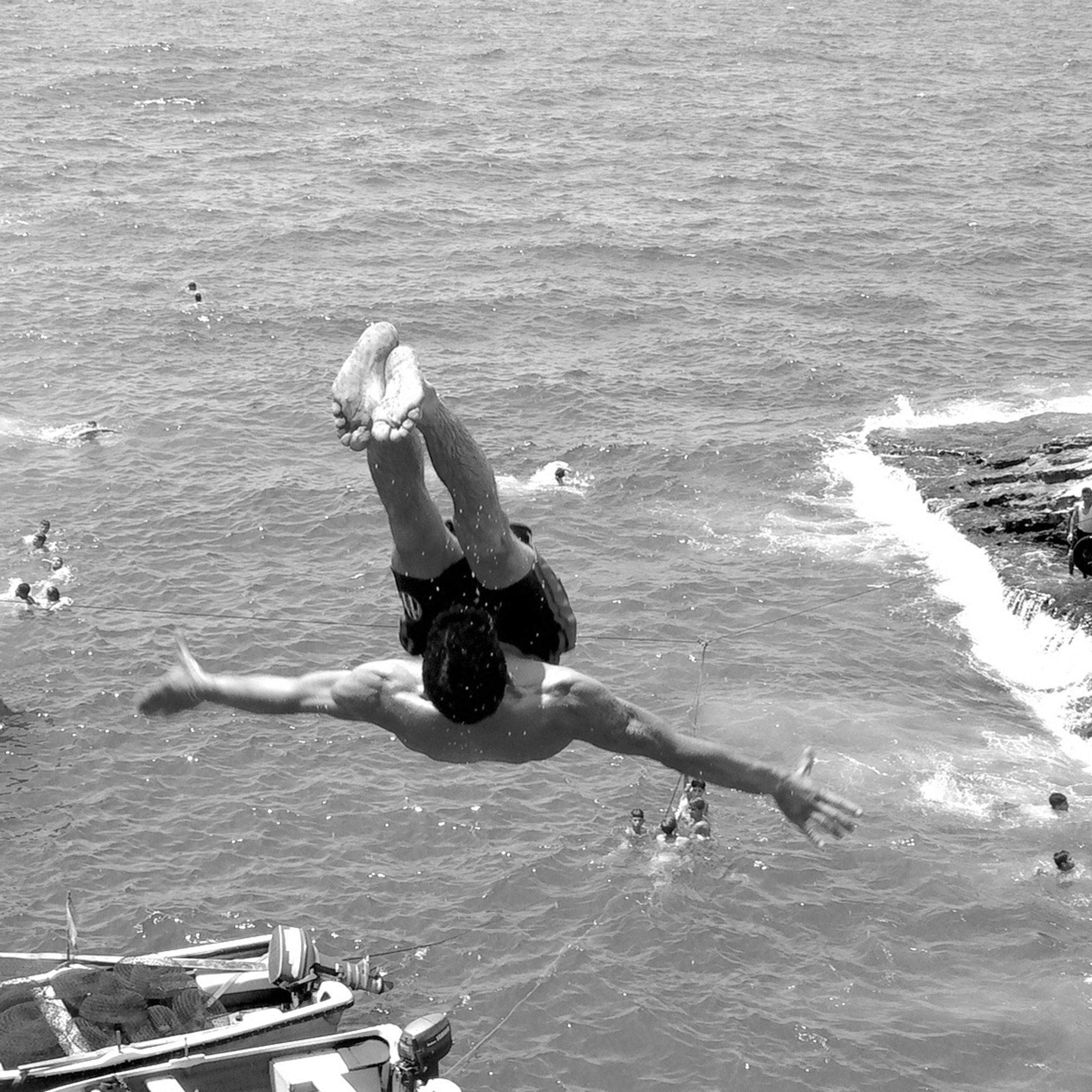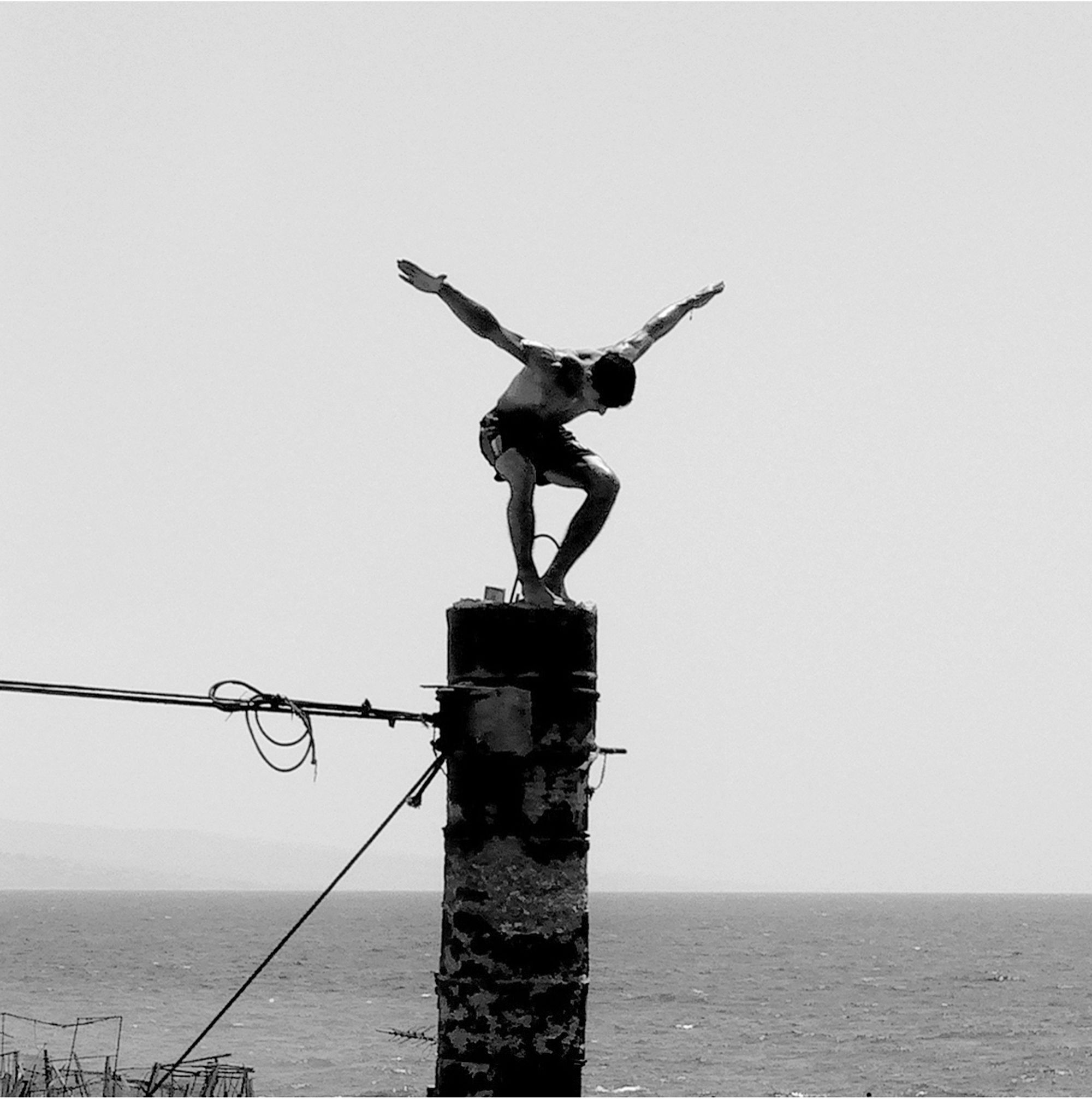 The Pigeons’ Rock is a natural landmark located at Beirut city’s westernmost tip. The two emblematic huge rock formations, which stand like gigantic sentinels, are surrounded by a rocky wasteland known as Dalieh. For decades, this vast terrain has acted as an ‘open access shared space’ for a wide variety of city dwellers. A community of swimmers, composed mainly of men, indulge in a hobby in which feat competes with exhibitionism.