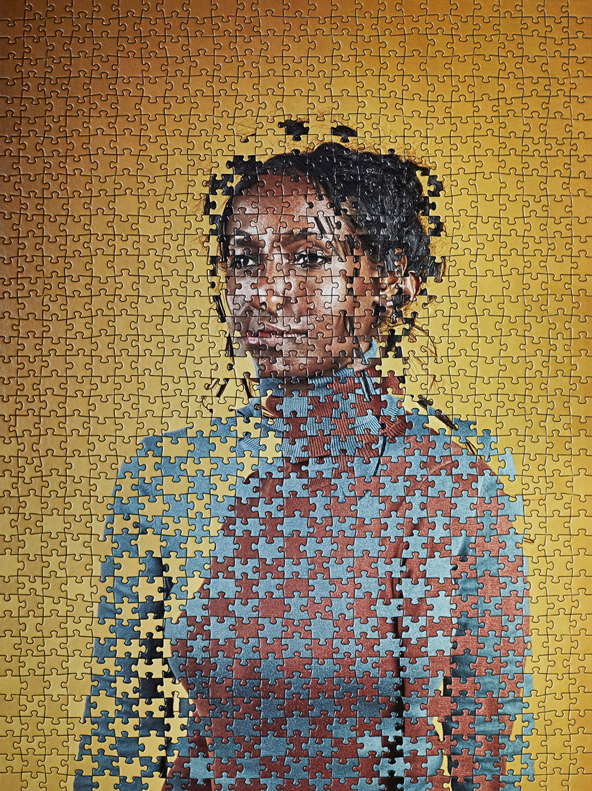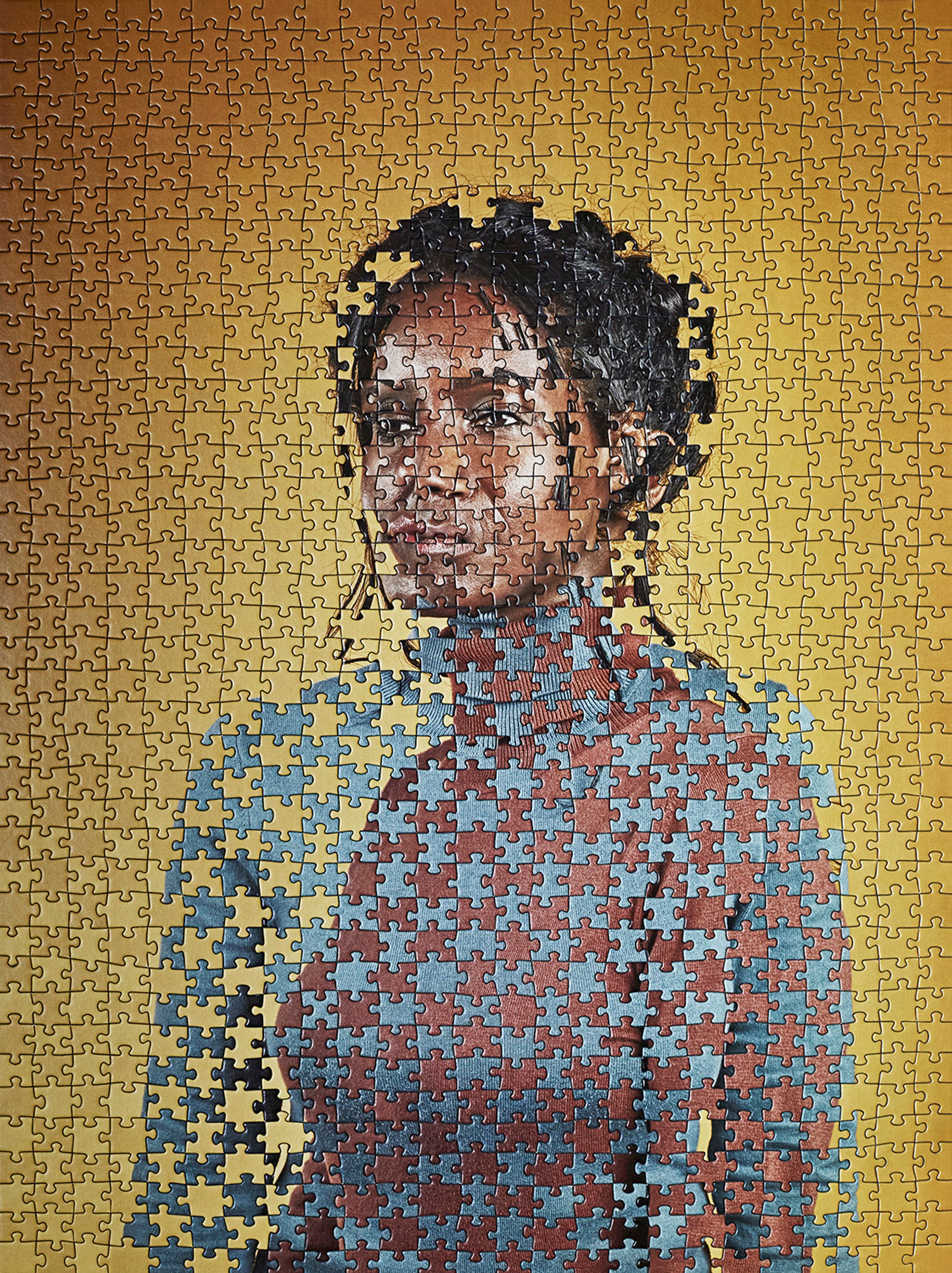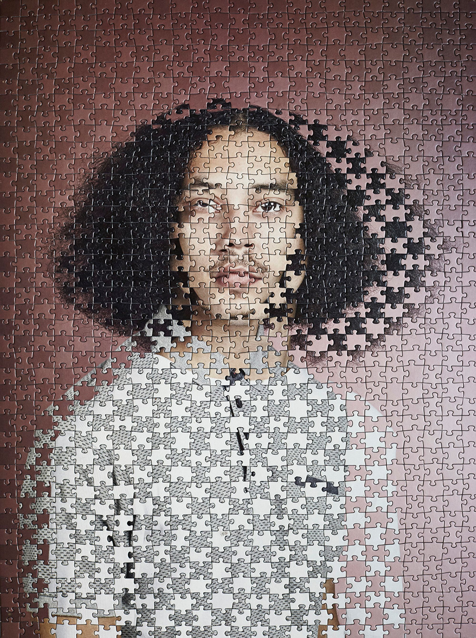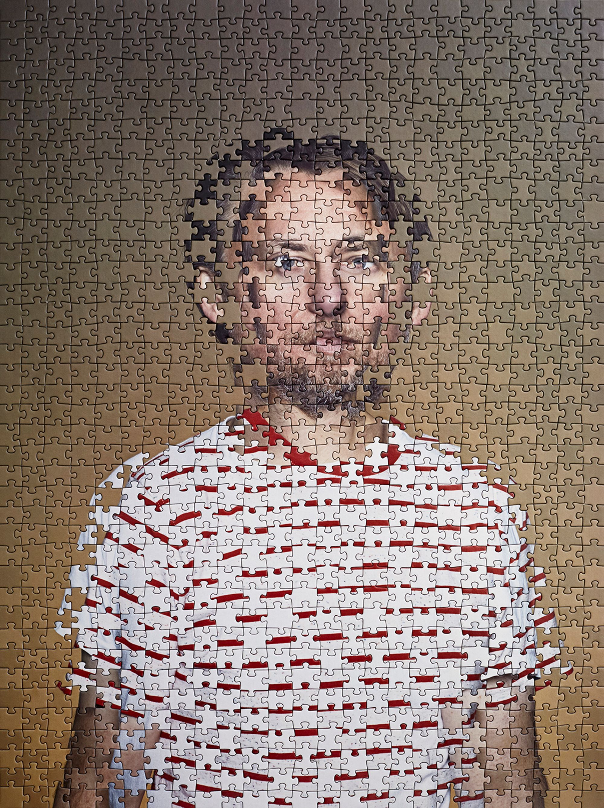 Alma photographed sets of identical twins and made them into identical 1000-piece jigsaw puzzles. Every other piece of the puzzle was then swapped until finally, each puzzle contained half of the other. It was not possible to predict where the eyes, mouths and lips would fall resulting in a pair of eerie, unrecognisable portraits. No longer seen as completely identical, they are unique.