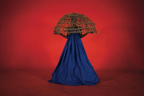Weighty stones and props aggravate the refugees’ physical and mental position: concrete tiles are fastened to a man’s torso, making his chest, and what’s inside, motionless; a prop sits on a man’s back - his body arched beneath its weight. Men are muted, or bent under wooden crosses, their arms stretching for height; others are subjugated by a docile but wild goat, a pyramid of hierarchy where animals sit on top and refugees sink. And a woman, dressed in a sea-blue gown, stares from beneath an upturned, suffocating, basket. Even caged, she maintains her grace and honor, her inquisitive glance, a sort of infinite humanity.