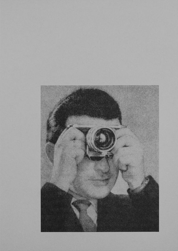 Founded on a long investigation into old camera manuals, Viewfinders by Matteo Girola explores the curious images of people looking through the viewfinder, often holding their camera upside down, turning them into “finders of new views.” The exhibition presents eight large risograph portraits floating on neutral backgrounds, printed on the same paper used in Girola's self‑published photobook.