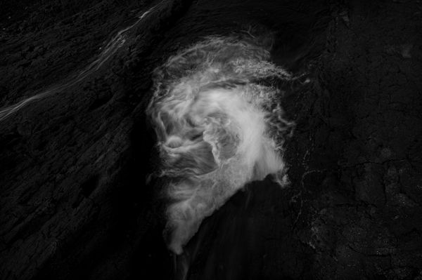 I started this project in Peru, photographing my friend Oswaldo Povea, who told me this powerful story. We went far deep into the mountains where ancient and endemic trees still grow alongside black water lagoons. As if to recreate the path taken by Don Benito Q'oriwaman before he entered the water. More and more, I was carried away by the intensity of this story, and I began to observe the water. When I visited Patagonia, in the south of Chile, I was able to spend long hours by a water course over black volcanic rocks. It is there that I could perceive a face in the movement of the water.