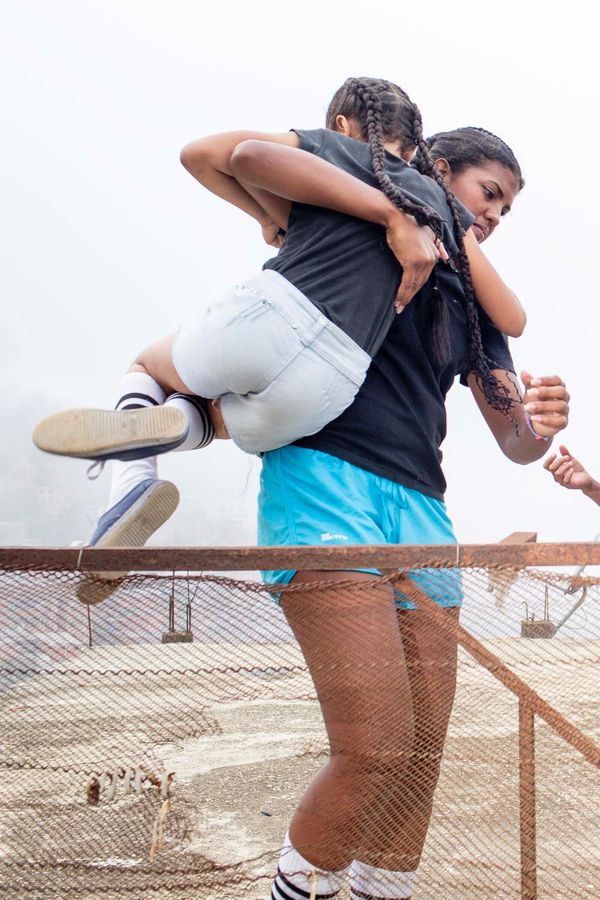 Besides the smoke and the helmets, tenderness emerges, a laughter pierces the frame, as if anticipating the hints of a recovery that recently materialises in some small ways in the country. “Venezuelans are kind of unbeatable”, Keyssar says. A photograph sums it all, of a little girl being hopped over a fence by an older member of her dance team. In a poetic and quiet way, it shows the power of a people leaving obstacles behind.