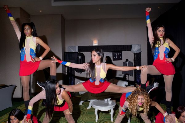 She coined a complex narrative including the rich and the poor, the crime and the militarisation, the unrest and the militant chavismo, the protests and the dance lessons, the parties and the struggle. Sometimes, she even draws parallel between two supposedly opposites. In her photograph of cheerleaders raising fists during a performance, superheroines of the everyday, one wonders whether they’re dancing or protesting.