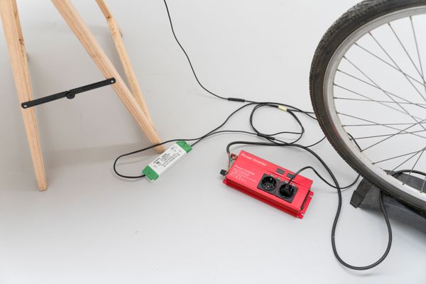 “The first room exposed visitors to three works on hemp paper, printed with Cannabis sativa L. plant-derived colors. They were unframed, secured with small magnets adhering to metal screws in the wall. This non-invasive hanging method preserved the integrity of the paper while offering a lightweight solution for transportation: the packaging was reduced to a single plastic tube and a backpack that I could carry on trains and by bike. Due to the ephemeral nature of the anthotypes, which fade within a month, I reused the same papers for two additional shows that followed in 2023”, explains Krings. “At the center of the exhibition, a green energy station was installed, consisting of a bike connected to a home trainer. An adaptation on the back wheel ensured the generation of 100% human-powered, green energy. Pedaling the bike activated a transformer that powered a UV-LED grow light. Positioned in front of the bike, a worktable held cannabis-color-coated paper prepared for UV light exposure. This participatory installation invited visitors to engage in the anthotype exposure process while prompting reflection on energy use and its origins. Eventually, a travel log encouraged visitors to record their journey to the gallery. This data allowed me to calculate the attendees' approximate carbon footprint, contributing to the exhibition's overall impact assessment.
