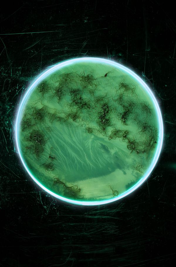 “The proliferation of green algae on the coasts of Brittany has become a major environmental issue. For many years now these "algues maudites" have invaded the coastline. Alice Pallot integrates the notion of anticipation into the photographic medium by capturing a natural phenomenon: the reality of anoxic environments, in which we could not survive as human beings and by imbuing them with a science-fictional imagination”.