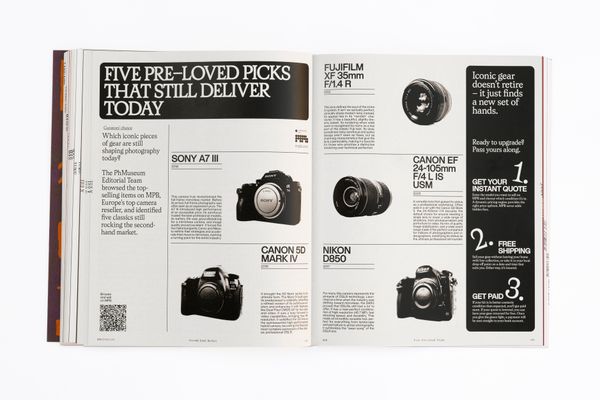 The process behind four works developed within our Online Masterclasses Program – Francisco Canton in FOLIO, Katerina Kouzmitcheva in CURAE, Alina Cristea in MEDIAE, and Polly Tootal in CRITICAE – is shared in May, and commented by tutors Elisa Medde, Laura El-Tantawy, Salvatore Vitale, Erik Kessels and Giuseppe Oliverio. A twenty-page section in July is dedicated to the 32 finalists of the PhMuseum 2025 Photobook Award, while two dedicated interviews deepen in the work of Tipi Bookshop in April and Perimeter Books in August. Four toolboxes throughout the whole publication share practical insights on processes related to photographic work – from applying to open calls to experimenting with bookbinding, while an advertorial developed with MPB, Europe's top camera reseller offers an homage to technicality and the cultural significance of cameras.