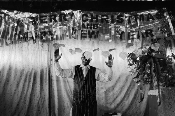 The book starts with the cover, an inverted images of bud-like flowers shining silver ink white against a matt-black background. Open the book and you enter a flash-filled world of religious ecstasy set against the excess of a wedding reception.