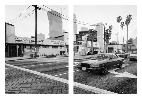 The story begins in the last months of 2019, when I started watching a lot of videos on YouTube of people playing GTA V. While I was doing so, I was taking a lot of screenshots, just for my own pleasure. Then, I started visiting GTA-related blogs on the internet, where people would post screenshots they took in the game for various reasons – people would post pictures of places they discovered on the map, or they may need some help moving on in a mission, and so on. And still, I was saving a lot of these images. In particular, I was captivated by the pictures made to promote those kinds of mods that enhance the graphics and make the game look better and more realistic. In order to show how realistic the video game becomes, the developers release some images which have very interesting visual features. They look nothing like the usual images made by professional in-game photographers. In fact, they adopt a very objective, deadpan, and straightforward point of view, which resembles very closely the visual language of the Documentary Style and the New Topographics.