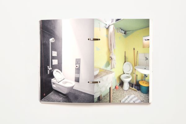 So far, so White Cube. And that theme of the inhumanity of the museum touched upon by its director continues throughout the book. In pairs of images showing ladders leaning against walls, radiators, doorways, storage cupboards, office tables, flat screen TVs, or washbasins, the museum interior is stripped bare, while the prison carries layers of history in the paint splashes, the worn-out walls, the scratches on the door, and the general wear and tear of over 150 years of prison history. But there are also human touches with posters, blankets, pictures, and tender touches that soften at least some of the prison edges.