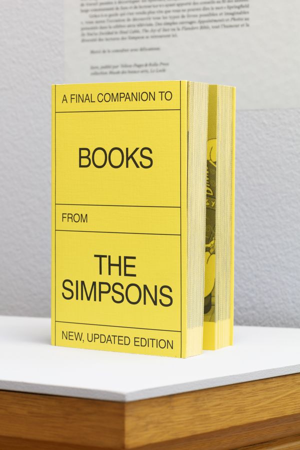 A book is a work of art. They have the wonderful characteristic of making a space more familiar and pacing the exhibition’s navigation as they slow down the visitors who consult them. More in general, I like to soften atmospheres and create contrasts between pop and rigor. I wanted, for example, to break the seriousness of the reading women’s paintings: this is why I exhibited Olivier Lebrun’s publication A final companion to books from the Simpson in their same room. Published by Rollo Press, the book collects screenshots of moments in the tv series where characters are reading a book - at times they’re existing volumes, at times they’re totally made up by the director.