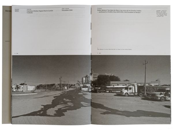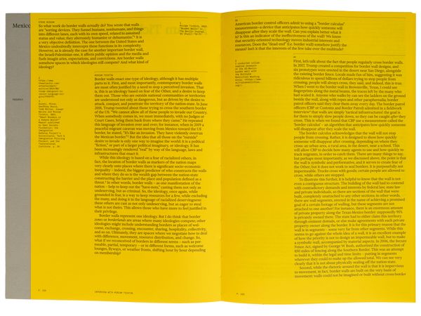 The book is divided into three sections (and comes with a map). The first section consists of Google Street View images of Mexico, the middle section consists of a series of texts including historical background and vernacular images, and the final section consists of Street View images of the United States.