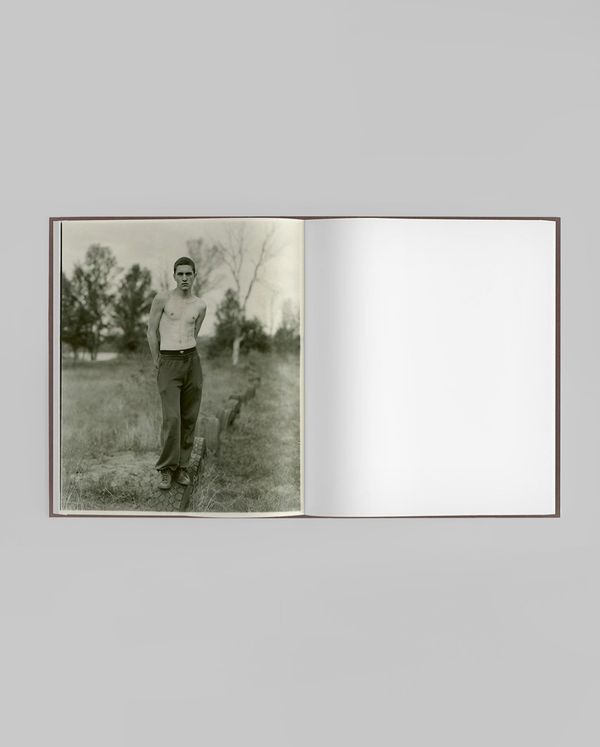 Throughout the book, there is a sense of longing, desire, and touch that can find no outlet. Well there is an outlet, one that lies beneath the surface, one that is evident in the final image of a young man sitting in what could almost pass for belted combat trousers,  his fingers half-latched together, his eyes in their own world, concealing something that lies beneath, a mark, a scar, a shadow.