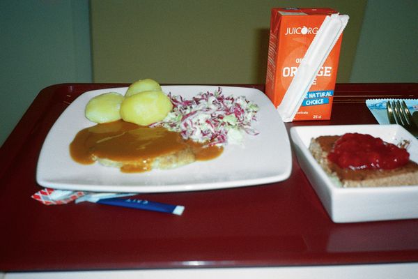 There are hospital blankets and hospital sheets, with blue running through them like hospital sheets the world over. There are plastic yellow disposal units for sharps and waste for incinerating, and hospital food that you pick at until the ice cream comes or you order a Chinese (as Jersø does).