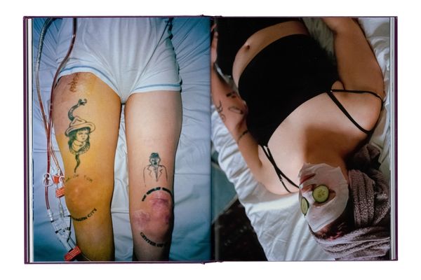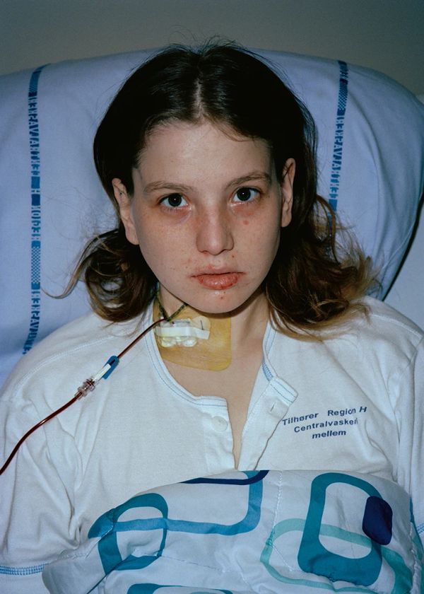 Open the book and we go straight into the kingdom of the sick with pictures of Jersø (during her 87th operation – she stopped counting after that) on a hospital bed, tubes in her mouth bandages over her eyes. There are drips, and sockets, and wires, and beds that go up and down at the press of a button.