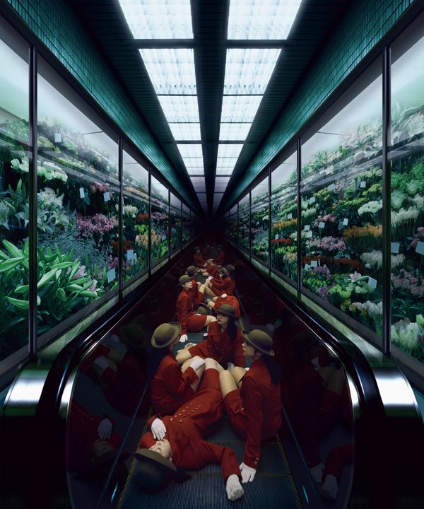 Yanagi Miwa’s Elevator Girl House 1F from 1997 looks at traditional gender roles in ‘elevator girls’ (and see Robert Frank’s photograph for a US equivalent). She said, “Suddenly I saw these women, who were continuously performing their role before the audience that is the society at large, in relation to myself, as I was now alone with no place in society. I became interested in women who had to act like robots reciting their given words and actions over and over in a ritual-like way, and I decided to do a work based on this image.”