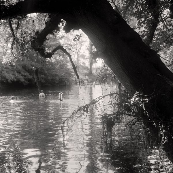 Children stand in the middle of its stream, trees and cliffs rising up on all sides, sunlight flicking through the leaves, water rippling through fingers. There’s a series of portraits of children in the water or on the riverbank, the background soft and hazy, and there are others of boys climbing trees (reminiscent of Raymond Meeks’ brilliant Half Story Half Life) to jump into the river. They sit by the shore, blow streams of vape from their mouths, and (in one of my favourite images) do handstands in the water, their trousered legs poking out above the surface.