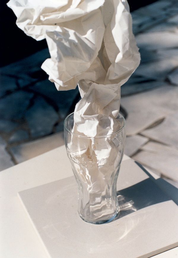 We walk through St. Gil, Jonathan Schmidt-Ott’s publication released by Spector Books, jumping from a diptych to the other. Each pair of photographs is a line in a poem, or a poem of its own. Sensations are triggered that are hard to verbalize. They feel like rhetoric figures whose rules we cannot tell. Our mind is pushed to think graphically. Impossible things start to happen - birds fly in a perfect line straight into the closed eyes of a man. A garden shot from above and a close-up of a hairy chest give shape to one geometry, making perspective and distance clash. Crumpled paper in a glass feels like smoke, rising.