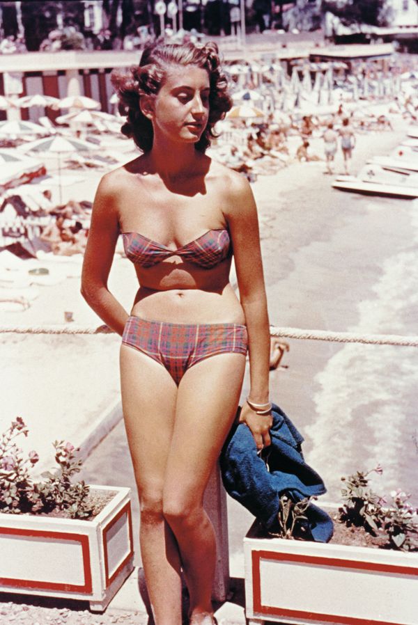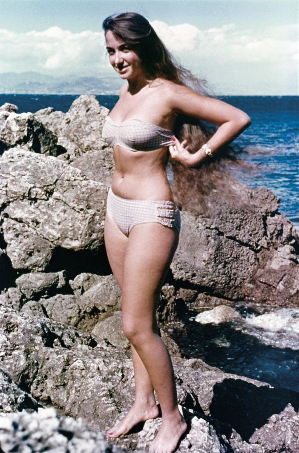 And then we see him. His name is Colin and he appears in a pair of red trunks sitting on a rock looking out to sea. A picture of Furneaux’s mother comes next, standing next to Colin’s red Roadster in her blush bikini. The picture was taken before they married, outside Colin’s brother’s house.