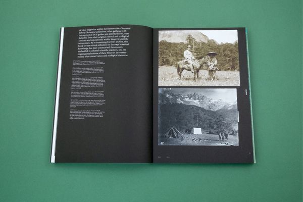 That romanticisation is evident in another strand of the book: the postcards. Taken from the collection of the Edinburgh Royal Botanical Gardens, they show an exoticised vision of rhododendron in bloom at Glencoe, Cragside, and Argyll.