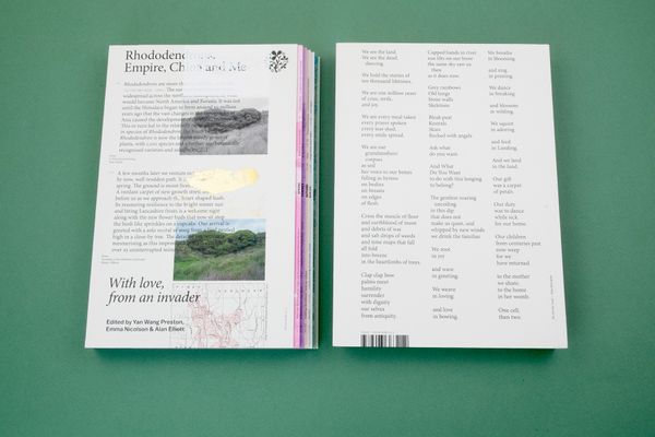 It’s a multi-layered book for a multi-layered subject, the terraced, titled fore edge reflects this. It contains a year-long series of Wang Preston’s images of a particular rhododendron bush, it features archive material looking at the history of rhododendron extraction in China, and it looks at what constitutes landscape, what makes a native species, where do names come from (and what are the names that have been forgotten or erased), and what constitutes an ‘invasive species’ in both botanical and human forms, in particular in relation to Preston’s personal history..