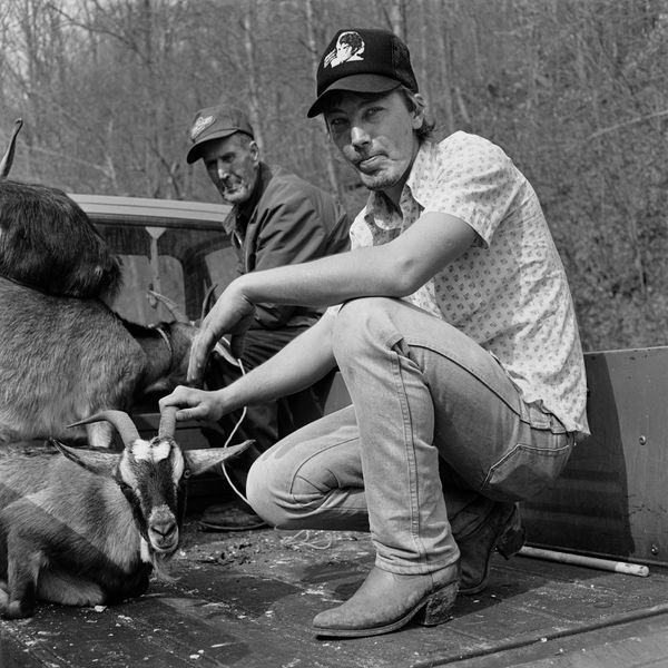 I think it is. There is an unsentimental directness about them combined with a closeness and curiosity and a courtesy. You can see it in the images of a older man standing with a goat in the foreground. The man’s cheeks are hollowed out under his Chevrolet cap, as he holds out a twig that the goat munches on. Behind him stand bare tree branches rising up out of the ground hinting at the rural foundations of the region.
