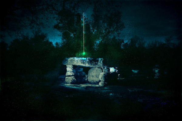 Looking at the works of authors who had played with the ambiguity of the photographic medium, Rollo began manipulating images, applying elements of analog and digital distortion, reintroducing “magical ritual” back into archival photos. When working on some images, she introduced symbols—water, fire, earth—elements that rekindle a connection to the essence of the rites.