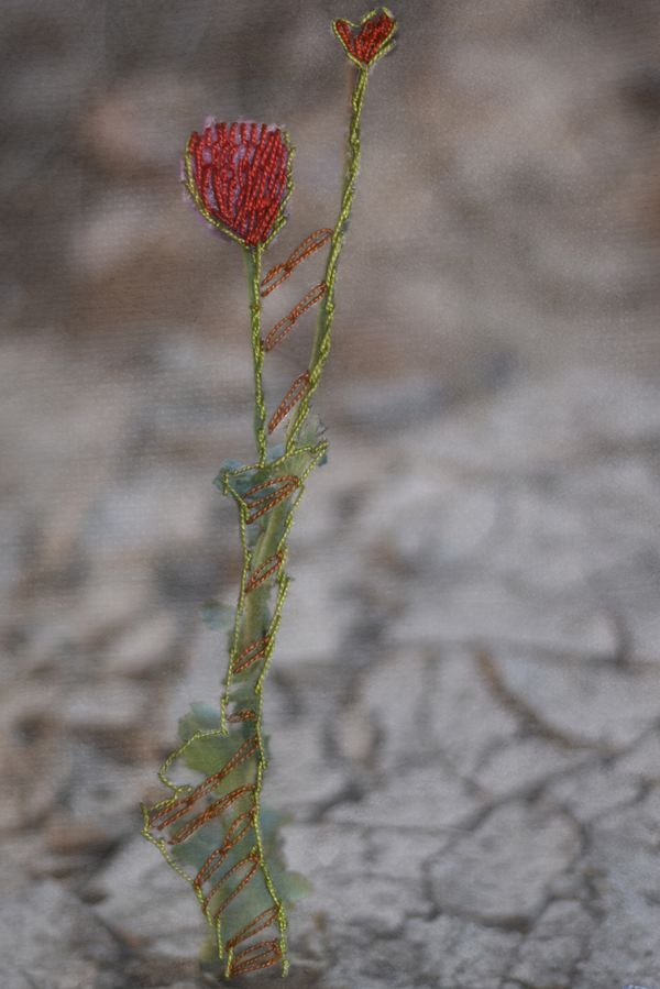 It first started with the women in the community. Including their voices came with a lot of obstacles, as they were very concerned about the way their images could be seen from the outside, and taken out of context. The image, or the trope, of the Bedouin woman is this very delicate, shy, voiceless being. They are, actually, the main pillars of the community - the ones who work every day to provide for the family, statistically more educated than men. I invited them to bring their own traditional medium, which was embroidery. Using it over textile prints, they could have full control over what was shown, and what was hidden. It was all very empowering, as their use of the technique then developed beyond the portraits and started being used as a more comprehensive commentary they gave on their families, and land.
