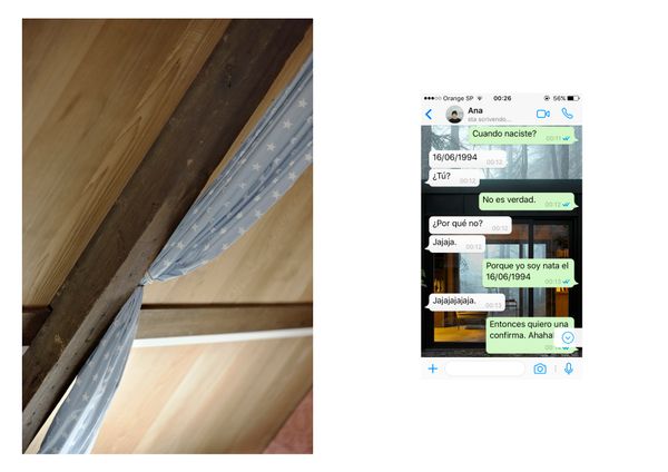 Italian photographer Martina Zanin's relationship with Ana started in 2017 on a date application and it has been strange since its beginning. Long before they found out that they were sharing the same birth date - 16 June 1994 - and astrological birth chart, Martina had discovered that Ana was stalking her by connecting a false GPS application to the dating application. Martina thought she was a bit psycho, but instead of stop talking to her, she kept developing a long distance relationship. Beside misunderstandings and fights, they promised each other that they would have met sooner or later. It happened at the end of 2019, two years after the virtual encounter. Nowadays they exchange messages, mostly about the visual project that Martina started after this peculiar and somehow life-changing event.
