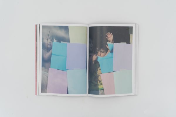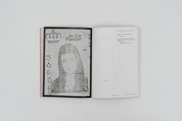 Between the pages of questions, there are photographs. The images taken by No Sovereign Author show Joseph and Razan in their home with their two children. The sit on the sofa, they watch television, there is a sequence of the family looking out of the window.