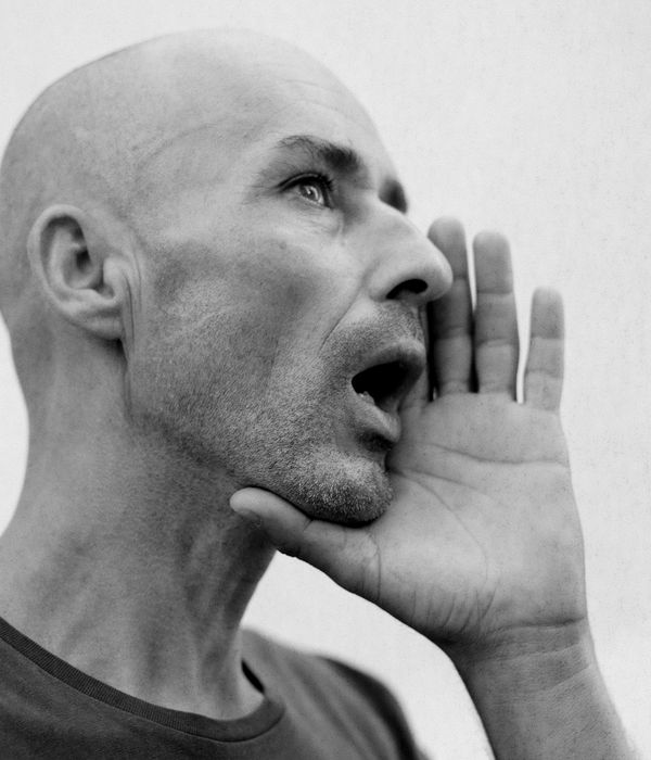 A diptych shows a man shouting, his hand close to the open mouth, amplifying his scream. “I was looking at ways of expressing, translating sound into images. I kept thinking of Bruno Munari’s Supplement to the Italian dictionary - of the way gestures can express something we all understand”, Gardaf says.