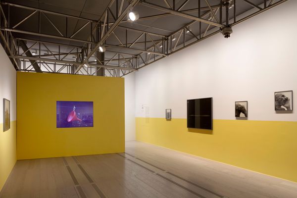The exhibition space at MAST Foundation presents In Praise of Slowness’ on a white and yellow background. “I painted the walls in a similar way as the streets in the old town: halfway, in two different colors. The space had to resonate with the actual streets where it was made”, Gardaf explains. The video runs on a screen hidden by a wall. All around it is the condensed selection of large-format photographs. “I wanted to create photographs that are not reproductions of the film”, he says, “and as I wanted them to work separately, I made them separately - I was never taking the camera when I was filming, and the other way around”. “With photography, I produce very little”, he adds, “I had a notebook where I listed the images I was looking for, describing exactly how they should be. In total, they are 15 or so. It wasn’t really about going to the street, documenting, trying to find things, but it was more about images that I wanted to make. Not much editing was needed afterward”.