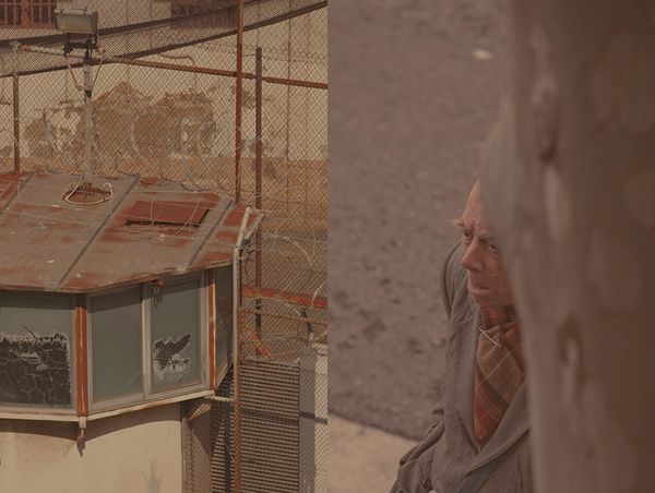 The prison is presented from up high from the surrounding rooftops. The sienna tones (and this book is very tonal) of the rusting iron rooftops match the scarf of a weatherbeaten man who lurks behind a wall, the connection between bar patron and the prison firmly established. There is barbed wire and there are barred windows, chain link fences and rust-stained walls. Cameras are directed and mirrors reflect in the prison panopticon that Danes makes himself part of.