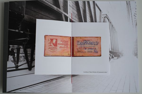 Throughout the book, there are heartfelt texts that lay the case for the innocence of her grandfather, and along with these words come reproductions of mementos and documents; his Shock Worker certificate, his Veteran of Labour medal.
