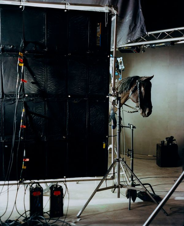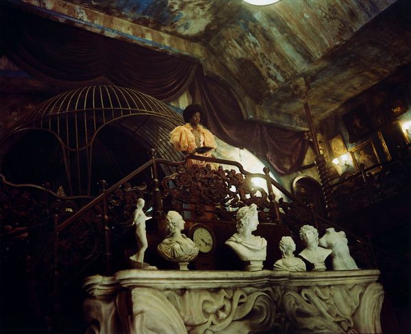 In reaction to the fast-moving creation of the film, Lanthimos embraced the opportunity to use a large-format camera to make these images, focusing on stillness, tonality and light. Deciding on a composition and not changing this until the exposure was complete, each picture provided him with a meditative time of focus. The creative process of making the images extended to collaboration with the actress Emma Stone who played the role of Bella Baxter in the film, for which she was awarded an Oscar. Through working together on previous projects, Lanthimos and Stone have developed a unique creative partnership. After a busy day of filming, they would develop the colour 6x7 negatives and the b&w 4x5 sheet film together in a makeshift darkroom in a bathroom. This alchemic act offered them both a creative outlet beyond the realm and constraints of the film.