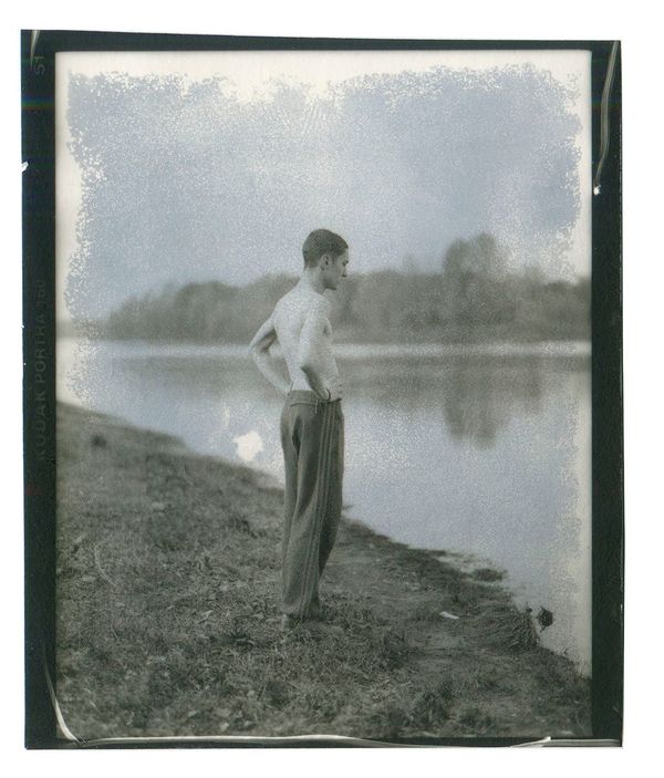 Bakin, a self-taught photographer, had been making images of Ukrainian youth for many years, often focusing on queer communities and sub-cultures—all united by the shared experience of coming of age. He began to revisit his archive of work to create a project exploring themes of masculinity and youth. For this purpose, in 2020 he began to print his work in a darkroom in his bathroom, enjoying the alchemy of the process and the tactile nature of the prints with all their imperfections. Then war came to Ukraine and the tone of the project began to metamorphosize. Some of those in the portraits would now be enlisted to fight in the war.