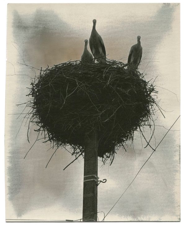 Bakin began to photograph landscapes scarred by war alongside damaged trees, rivers and fields of marching sunflowers. He would now develop the prints during air raids with a womb-like red light of the darkroom providing a place of safety and escape from reality. At one point he ran out of paper fixer and continued to use the same mixture until it was exhausted. The chemical imperfections also resulted in red and purple visual bruises on many of the images, an allegory for blood on the land.