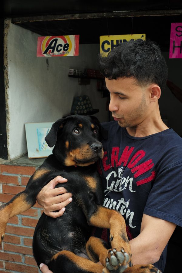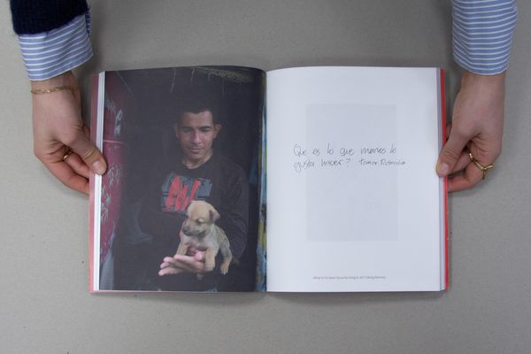 Ronald’s book proposes a reversal, in which dogs make their companions human, despite their hostile gaze. The images move and touch us, until suddenly something strikes a wrong note: an architecture that is too severe, a domain of men only, a harsh atmosphere that speaks of a violent background. We realise that these peaceful, happy, almost childish images come from the stark world of the Venezuelan prisons.