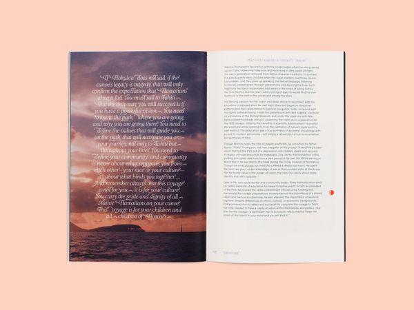Tucked into a discreet back pocket, The Story features an essay by Jeremy Haik alongside Ko’s documentary photographs that highlight the visionaries who breathed life back into Hawaiian voyaging. Presented through a framework of mythology and dreams, it is a story that begins with the ancestors of Polynesians who mastered the art of celestial wayfinding and the language of the ocean three millennia before the European Age of Exploration. This remarkable chronicle is anchored by Hōkūleʻa, a modern incarnation of an ancient voyaging canoe that became a catalyst for connection, cultural reclamation, and fostering humanity’s relationship with the natural world.