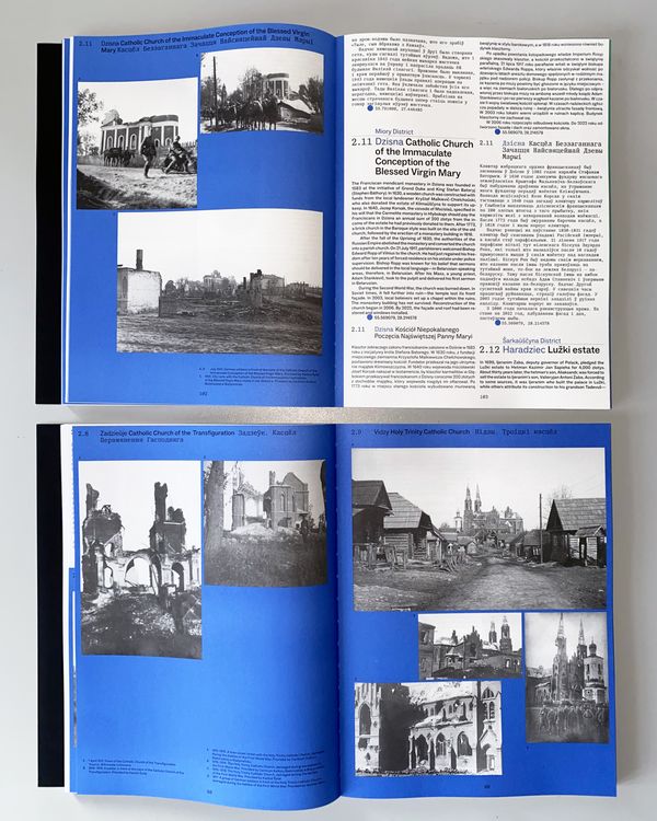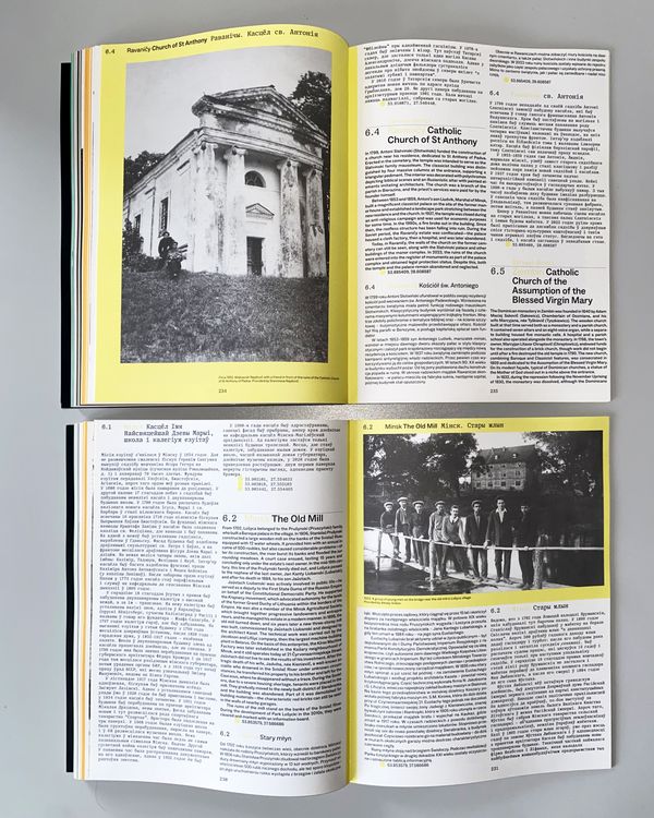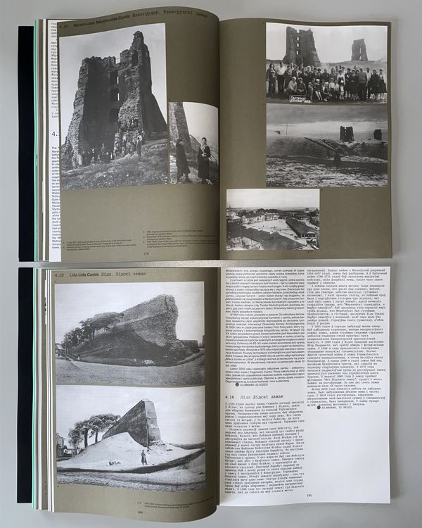 Its pages feature castles, Orthodox churches and synagogues, mosques and town halls – buildings that have fallen into ruin, been saved, or disappeared forever. The photographs have been from dozens of sources, both public and private. People are present alongside buildings. In this way, the photographs tell a story about the fragility of the world, where yesterday’s unshakable walls now lie at the feet of someone passing by. This publication is an invitation to a journey where the distraction has become one of the defining features of Belarusian culture.