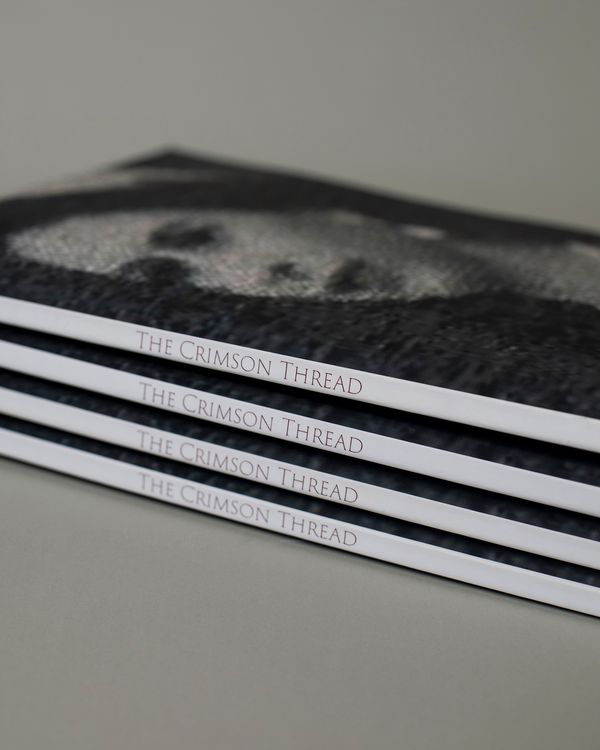 Each copy of the book is a unique edition with distinct archival material collected from 1954 newspapers and magazines added by hand, bound with a softcover velvet finish. The Crimson Thread is both a fictional reimagining of the time and a wider critique of Australia's colonial legacy.