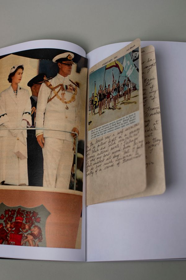 Diary entries and archival material are interwoven throughout the book, deepening the narrative with the sentiment of the time. The diary belongs to Doreen, a fictional wife and mother working as a seamstress on the Royal Tour. Early entries express Doreen’s excitement to be part of such a monumental event, however as the tour goes on, she comes to question the Queen’s role in Australia and becomes increasingly more scathing. Doreen’s nuanced opinions serve as an invitation for viewers to contemplate the ongoing relevance—or irrelevance—of these enduring, archaic institutions.
