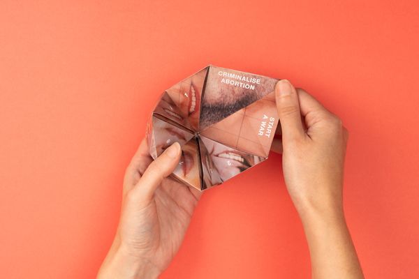 At the end of the book, tucked into a glassine pocket, there is a ‘fortune teller’ game printed with politicians’ features. Play the game and you will be ‘rewarded’ with different political outcomes.