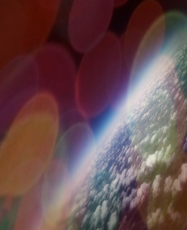 Imagery imagined with the 'Overview Effect.' Observing Earth from above can alter cosmic perspective and cause a mental shift. Seeing the world from a distance, one will realize the inherent unity and oneness of everything on the planet. From the window of a plane, at thirty five thousand feet, these images were created.