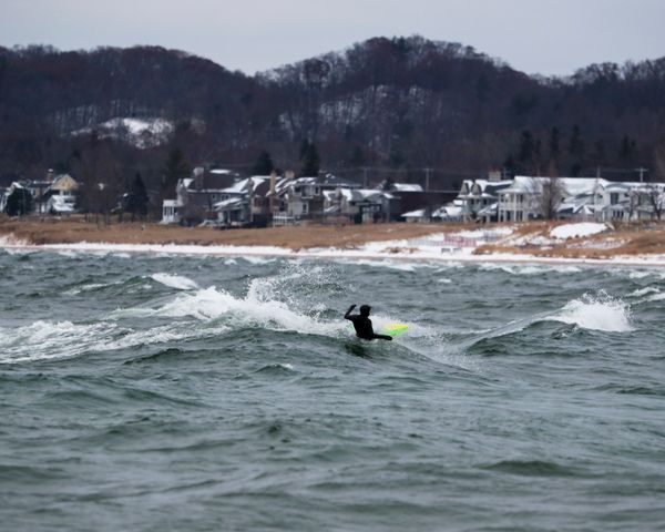 I grew up skating in the Southeastern United States where we quickly learned how to be resourceful with what we were given. Upon learning about the surfing community on the third coast, I immediately felt drawn to it for this reason. Although there are waves throughout the year, the best months typically are during the harshest winter months. It is during this period that I have focused my work. I believe that is partly what makes this so unique. I am fascinated by the individuals that brave some of the most extreme elements to find surf-worthy waves. That being said, I am not a surfer, so I went into this project blindly to document this community and in doing so, I realized I did not want to approach this as a surf photographer. I am far more interested in the practitioners of the sport and the personal relationship with the water. This is a project about those people. About this place. About their experience. Saltwater surfers, to a degree, are able to surf most every day at some point. In contrast, sweetwater surfers have to plan ahead, closely follow weather patterns and wind charts, travel great lengths to spots. And after all that work, they may arrive only to find placid waters. This project documents that operation, but it is equally about their successes as well. It is all part of the process.
