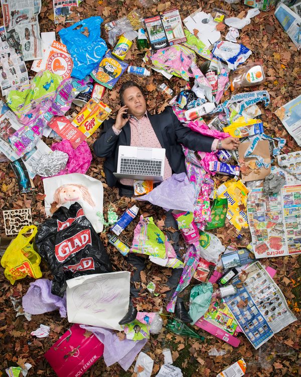 7 Days of Garbage is a series of portraits of friends, neighbors, and other acquaintances with the garbage they accumulate in the course of a week.