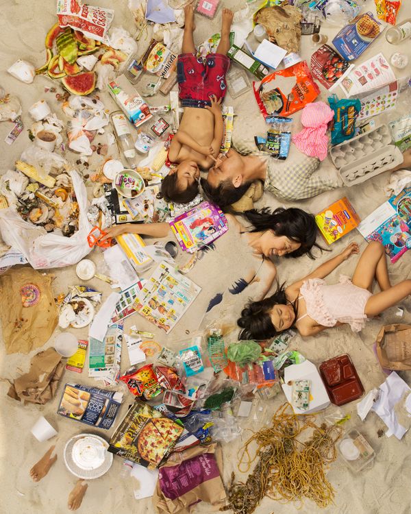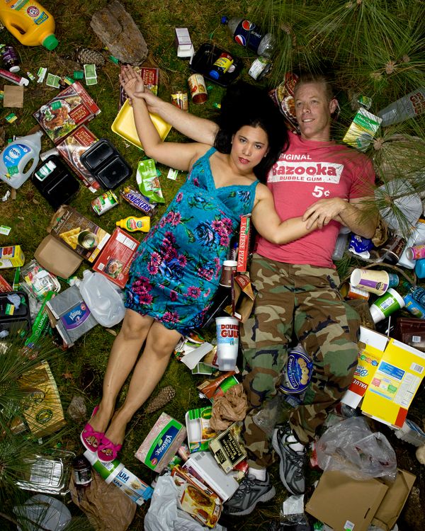 7 Days of Garbage looks at garbage in a way that makes consumption, excess and waste impossible to ignore. I asked friends, family, neighbors, and other acquaintances to save their garbage for a week and then lie down and be photographed in it. I've created the environments for the portraits in my yard in Altadena, CA - forest, beach, snow, pond - settings lifted from nature to suggest the pervasiveness of our trash. The result is instant archeology, a record not only of our waste, but of our values. In these pictures, the subjects (which include me and my family) are both victims and perpetrators; we are cogs in a machine we feel is beyond our control. But we are capable of making changes in our consumption habits. The deeper goal of 7 Days of Garbage is to be a catalyst for change and to contribute to a growing, grassroots community that is taking responsibility for the global crisis of excess and waste.