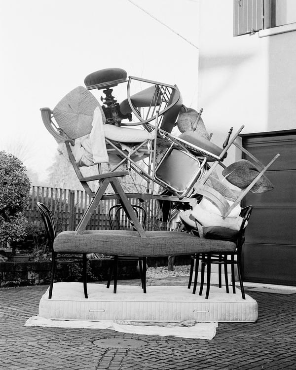 The domestic space is portrayed as an absurd and uncanny theatre defined by the creation of human and material-based structures, by members of Agostini’s family engaging with anti monumental activities, human-made installations and domestic objects, to conclude with the documentation of the borders of the home, repetitively photographed to underline the dimension that exists between inside and outside, between the private and public.