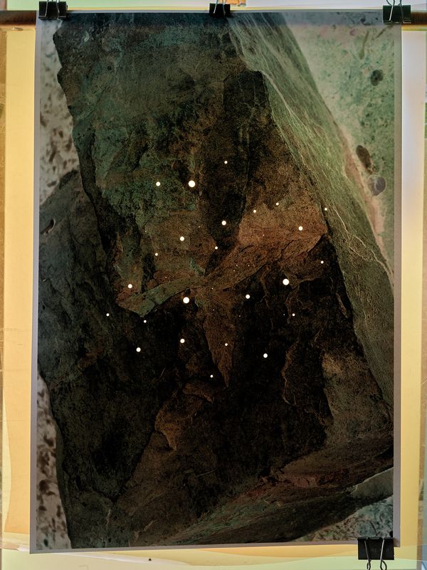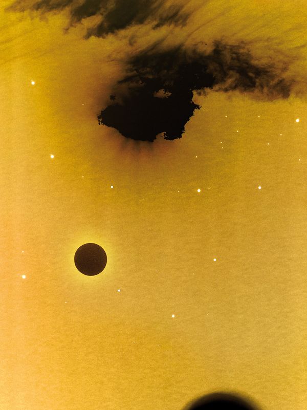 The visual draft for the new solar system is mimicking and paraphrasing popular astronomical imagery, which has been trending a lot since the first images through the James Webb Telescope hit the media. The setups for the pictures are built in an improvised studio surrounding and are probing basic and classic photographic processes in a playful way, like for example the positive - negative depiction of subjects, inserting the typical grey checkered photoshop background or the play with flat or deep spatiality. The studio arrangements are pushing banal objects into a new context and are loading them with a new meaning. Popular terms from the field of astronomy - like for example Big Bang, Dark Matter, Black hole or Milky Way - are the stooges for my setups. Common astronomic and photographic clichés deliver further substance. The viewer of the „Draft for a new Solar System“ is held in-between following the surreal narrative or the pseudoscientific lines of the story and debunking the cheap fakes. The story is building up a purely emotional credibility, which can be revealed easily. The emotional impact of the project is also fueled by topics like the starry night, the sun set and by the use of candy colors.